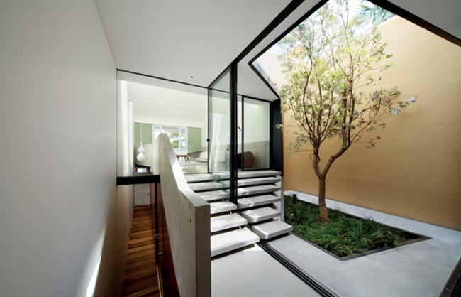 Nếu diện tích của giếng trời nhỏ thì bạn nên sử dụng những cụm cây xanh làm chủ đạo, điểm xuyết thêm ở tầng phía dưới là những cây dạng bụi hay cây hoa nhỏ, không quên trang trí thêm sỏi và đá trắng.