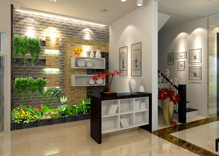 Đối với loại cây chủ đạo thì nên chọn Kim Tiền, Cau Hawaii, Trúc Nhật, Thiết Mộc Lan, Kim Ngân…, cây tầm trung thì có thể chọn Trầu Cánh Phượng, Saphia, Trầu Đế Vương để trang trí.